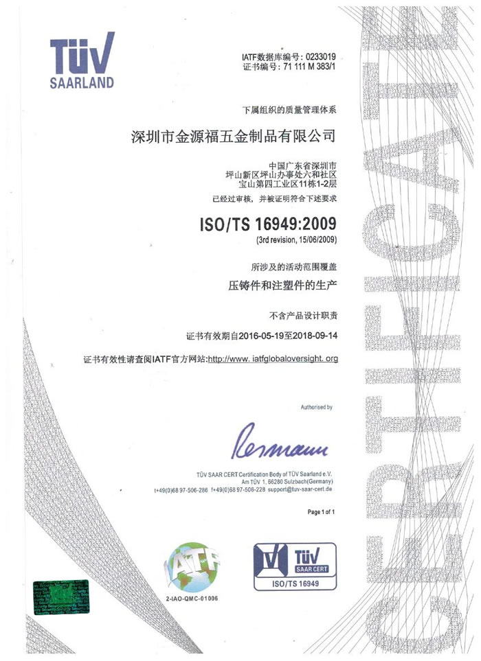 深圳市金源福五金制品有限公司成立于2003年。公司擁有8000多平方米生產(chǎn)廠地、開發(fā)與管理精英人才、技術(shù)專業(yè)、設(shè)備精良、交通便利、服務(wù)周全、具體設(shè)計(jì)、開發(fā)、制模、出樣、生產(chǎn)到成品出貨一體化模式生產(chǎn)廠家。已通過ISO9001:2008ISO1440/TS16949:2009國(guó)際質(zhì)量體系認(rèn)證。專業(yè)生產(chǎn)鋅合金壓鑄、鋁合金壓鑄產(chǎn)品、汽車配件、汽車后視鏡支架、車載導(dǎo)航散熱器、LED散熱器、LED燈罩、數(shù)碼電子五金結(jié)構(gòu)件、家具五金裝飾件、標(biāo)牌(LOGO)等五金壓鑄產(chǎn)品。